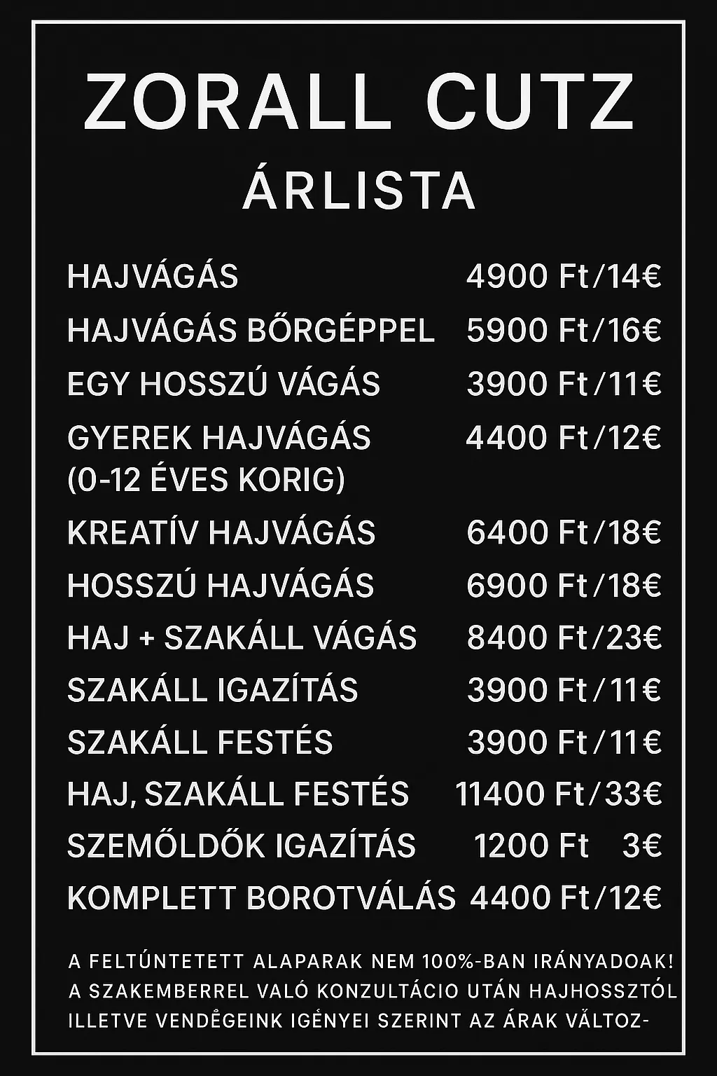A Zorall Cutz egy modern, stílusos borbélyszalon, ahol a klasszikus technikák és a mai trendek találkoznak. Nálunk a minőség, a precizitás és a jó hangulat alap. Célunk, hogy minden vendégünk úgy távozzon, mintha új ember lenne magabiztosan, frissen és elégedetten.